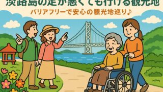 淡路島で足が悪くても安心して楽しめる観光スポットを紹介。車椅子や高齢者に優しいバリアフリー施設、海辺の遊歩道や絶景カフェなど、ゆったり巡れる癒しの旅を提案します。